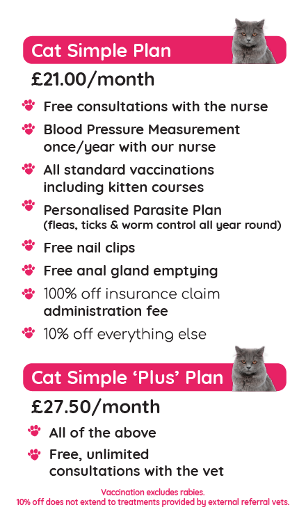 As you would expect, our plans include these things- but we thought we should go further. If you are ever worried about your pet’s health, we always want you to get in touch or come and see us. So our health plan ‘PLUS’ includes UNLIMITED consultations with the vet – these can be online, via phone, or at the surgery.